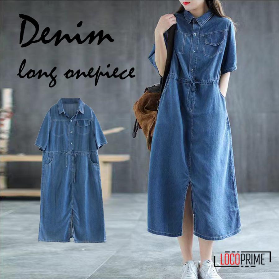 マキシデニムワンピース50代ワンピースデニム大きいサイズ韓国風デニムワンピース夏 メルカリ